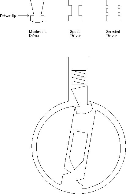 Figure 9.7: Mushroom, spool, and serrated driver pins